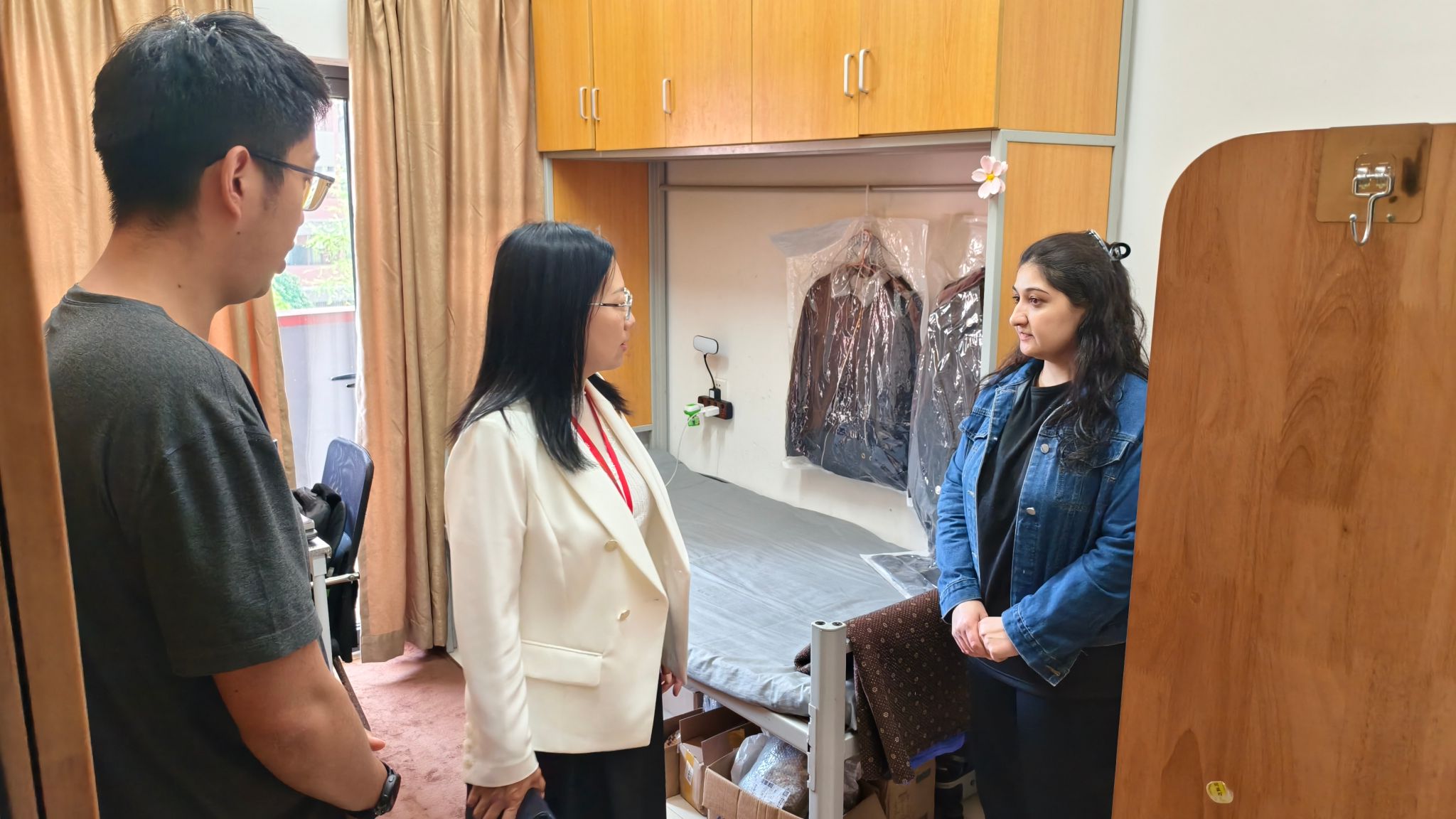 领导班子带领全体辅导员,分组深入梅山校区与主校区学生寝室,集中开展安全卫生专项走访活动。此次行动以“查隐患、防风险、送关怀、促整改”为主线,重点围绕防范火灾隐患、假期安全教育、学业压力疏导及专项工作排查等内容,将五一假期前安全隐患精准排查与常态化学生关怀引导深度融合。